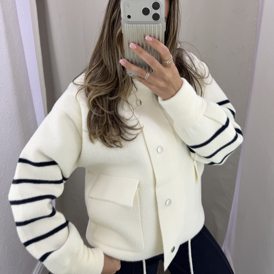 Striped Knit Bomber Jacket