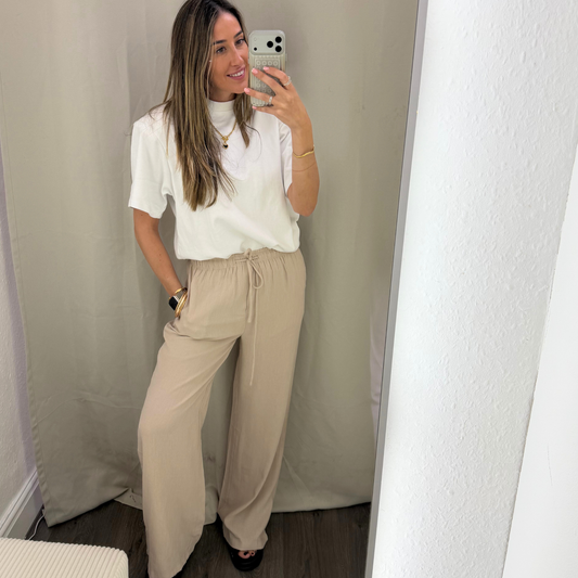 Beige or white Relaxed Drawstring Trousers