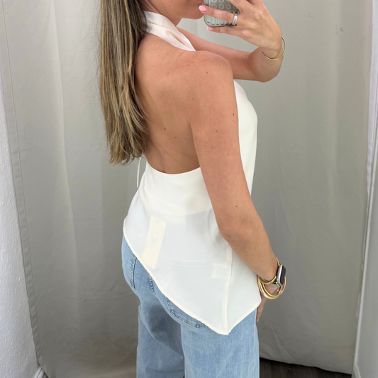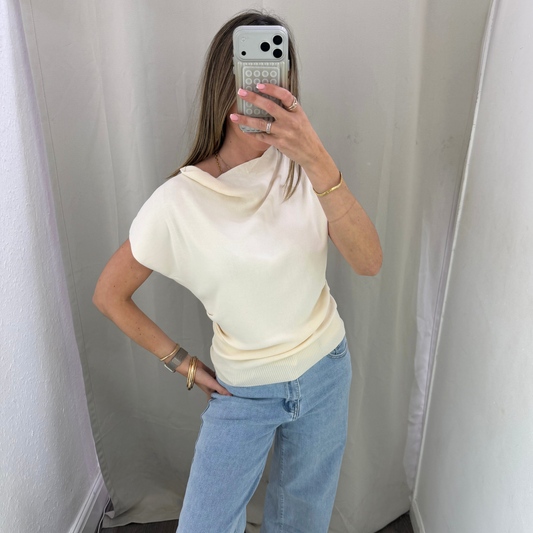 Cream Cowl Neck Halter Top