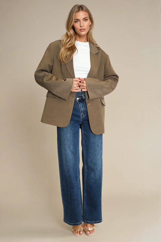 Taupe Oversized Double Button Blazer