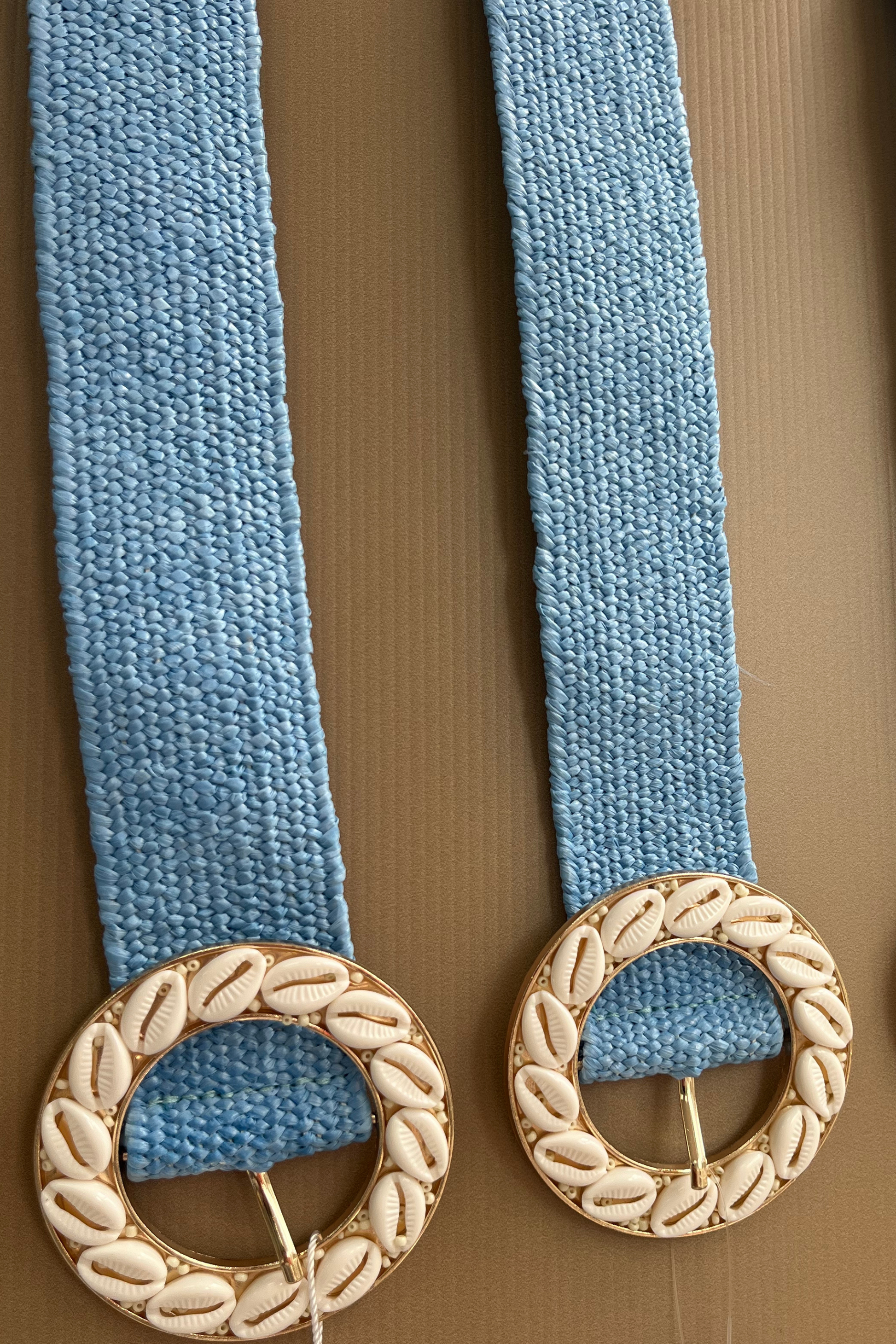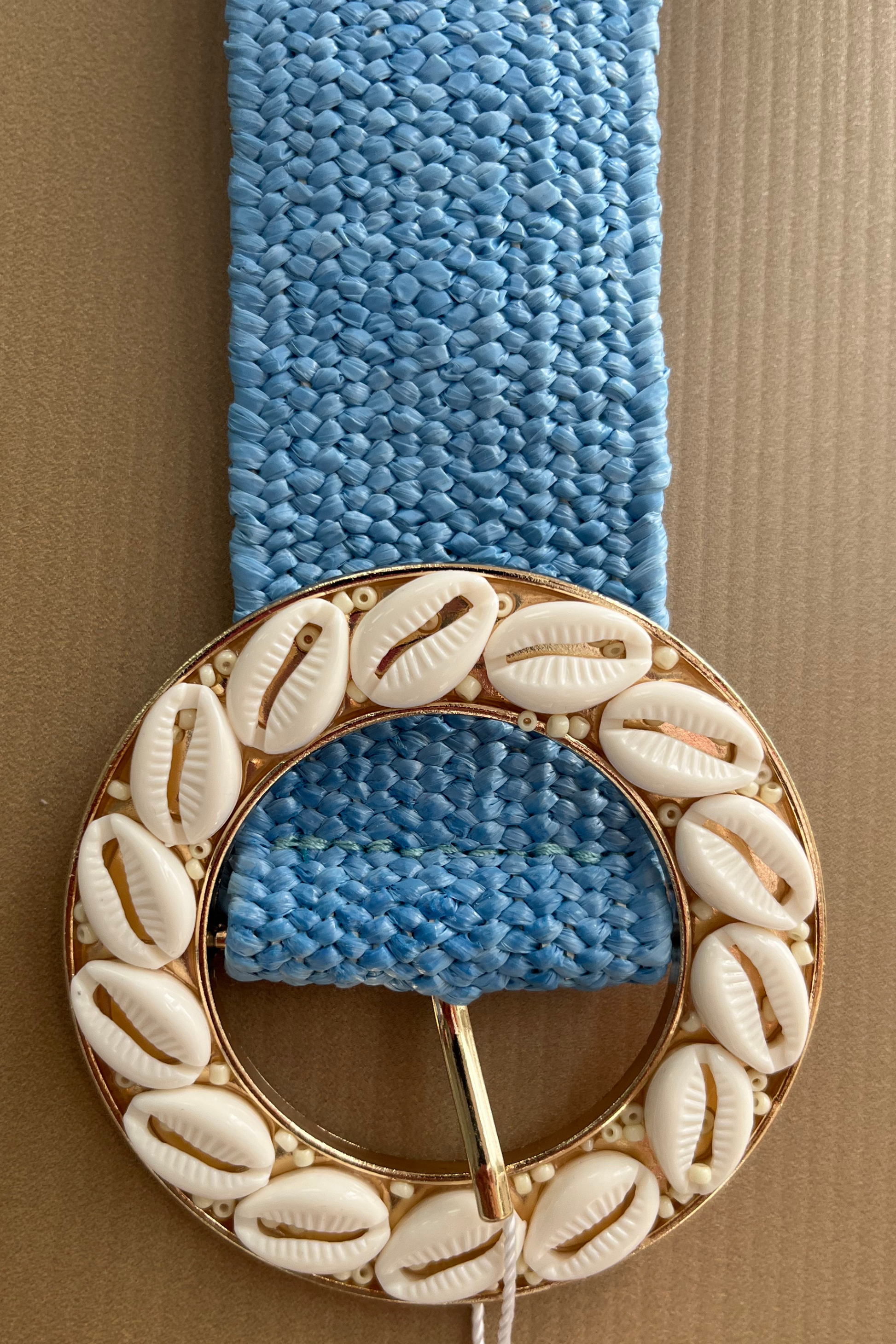 Add a touch of coastal charm to your ensemble with our Blue Elasticated Belt featuring an elegant shell buckle detail. This versatile accessory combines functionality with a nod to seaside style, making it a perfect addition to any wardrobe.