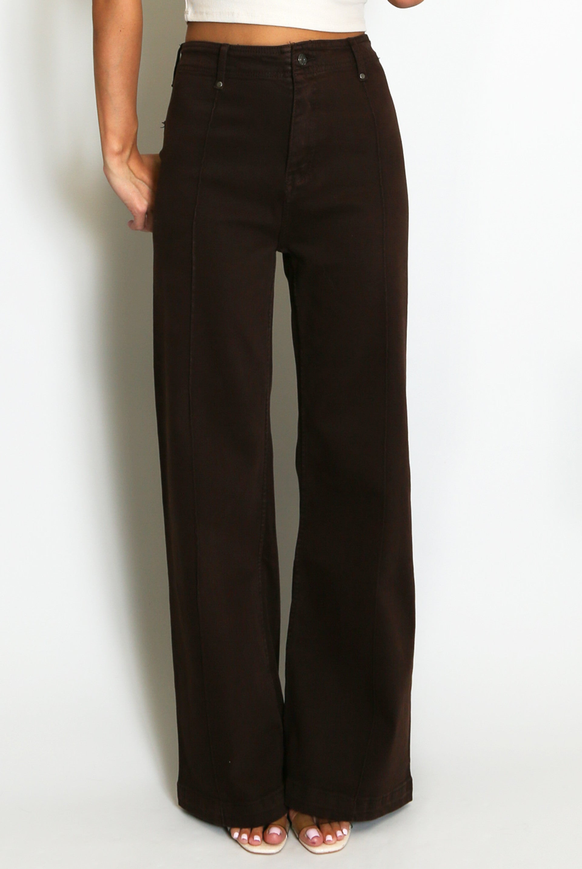 Elevate your denim game with our Brown Visible Seam Wide Leg Jeans — a statement twist on a wardrobe classic. Designed with structured visible seam detailing and a flattering high-rise fit, these jeans create a sleek silhouette that elongates the legs while keeping comfort at the core.