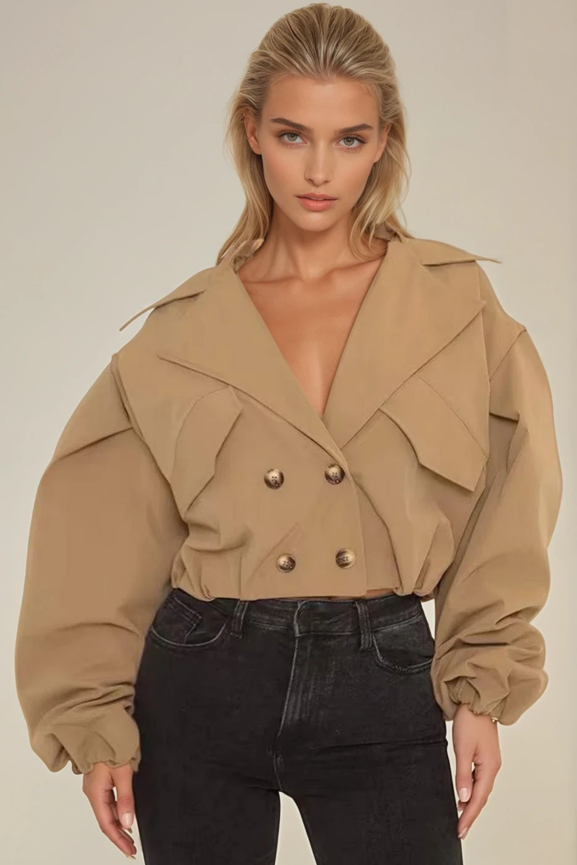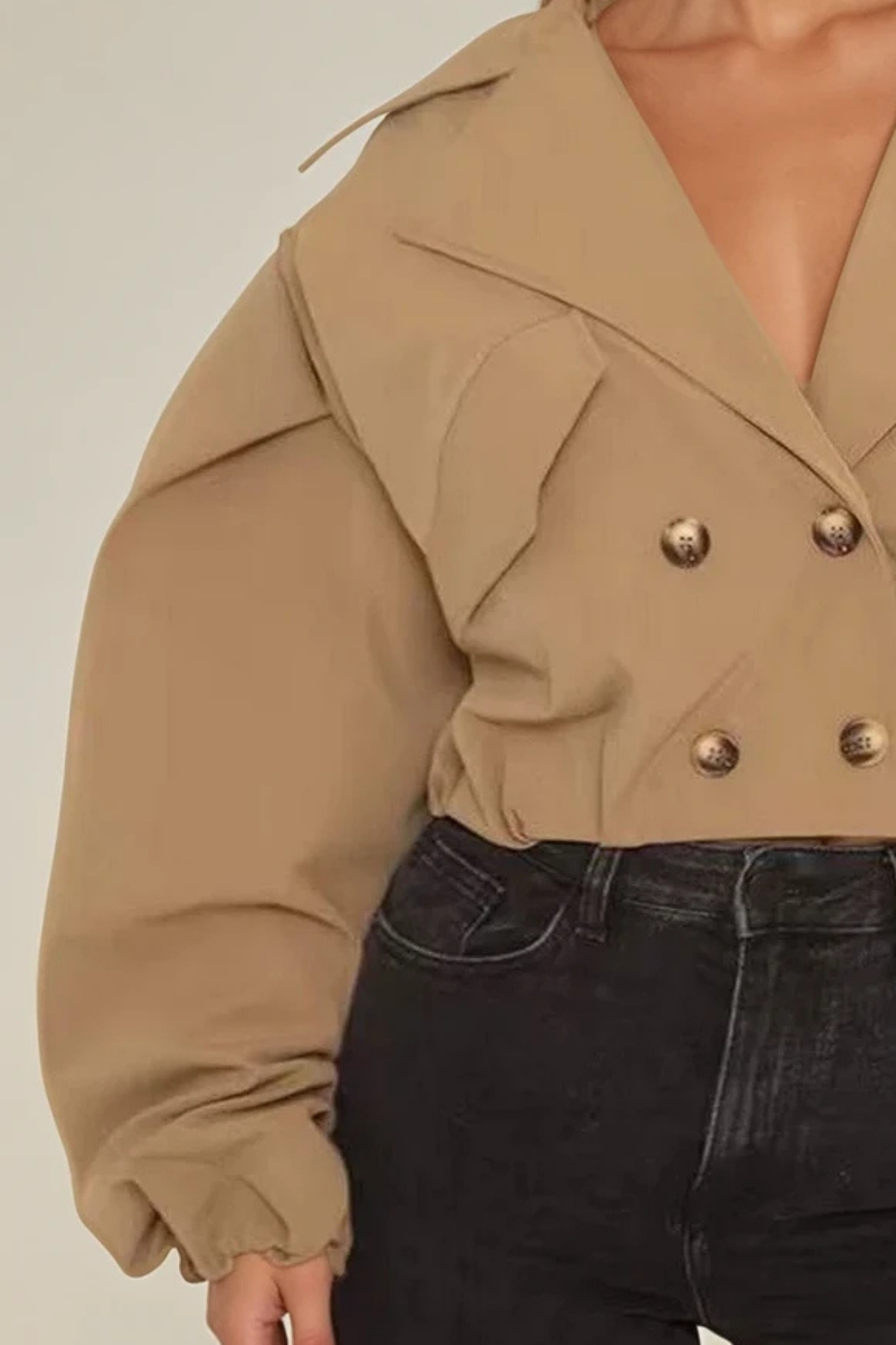 Classic trench detailing with a cropped silhouette