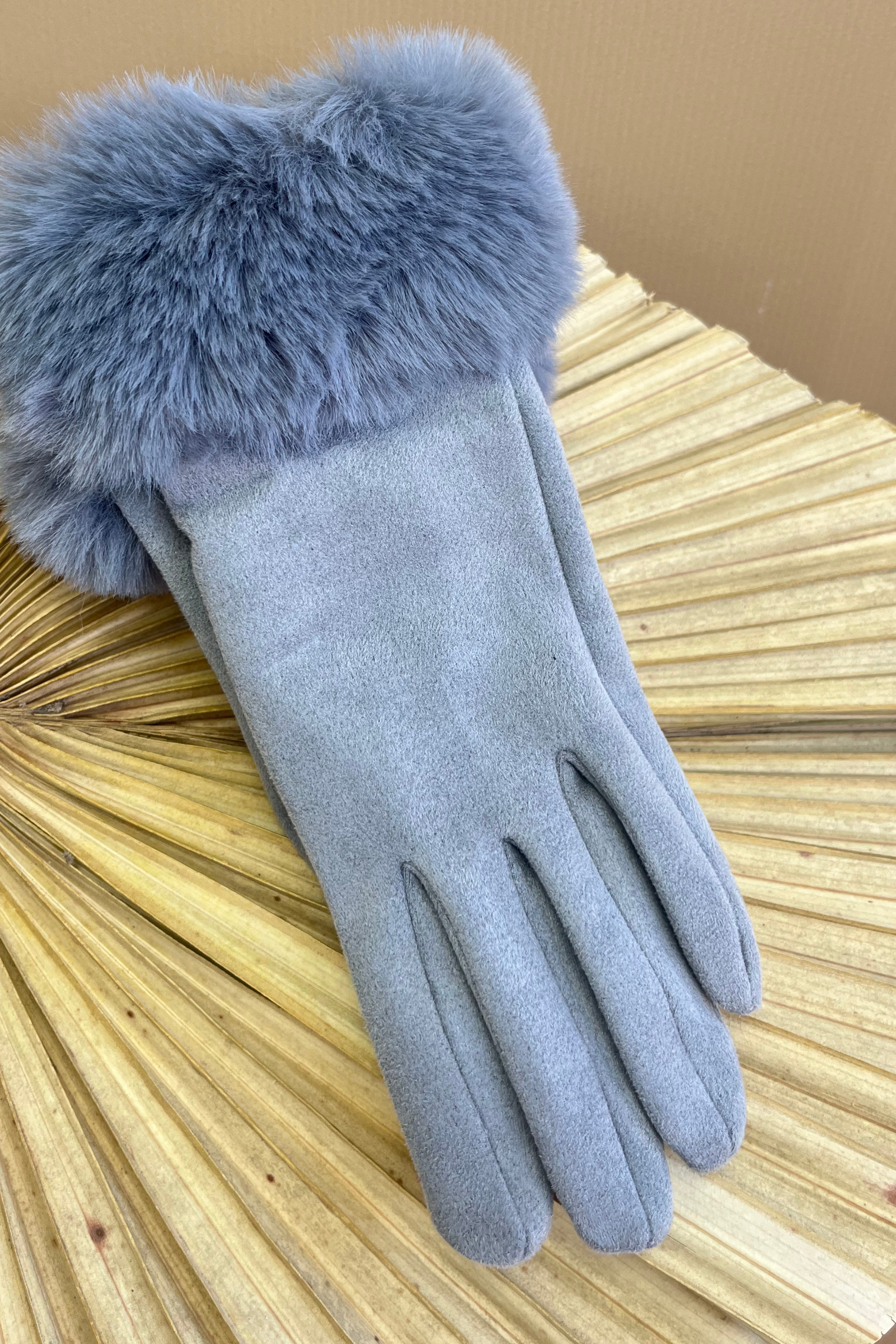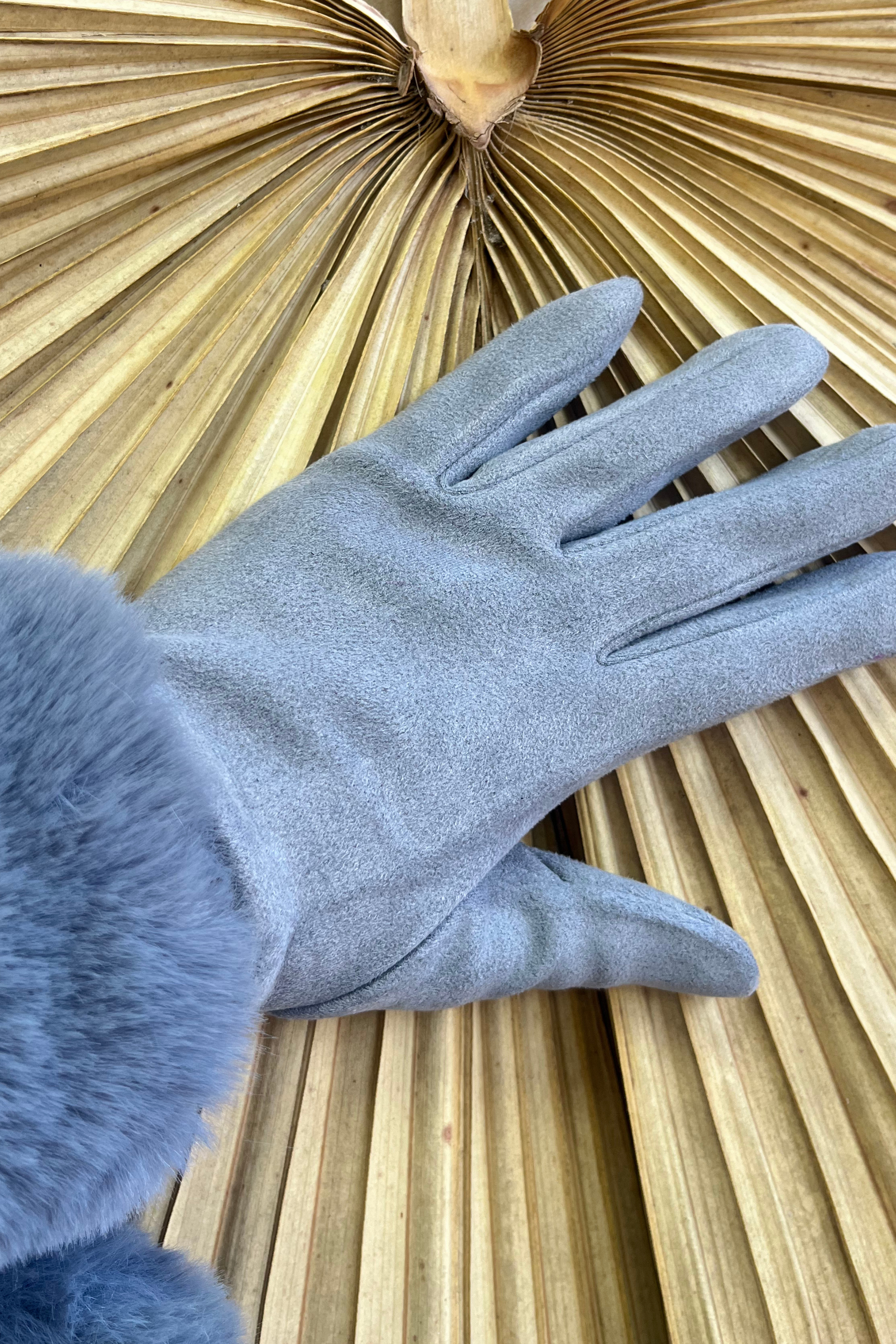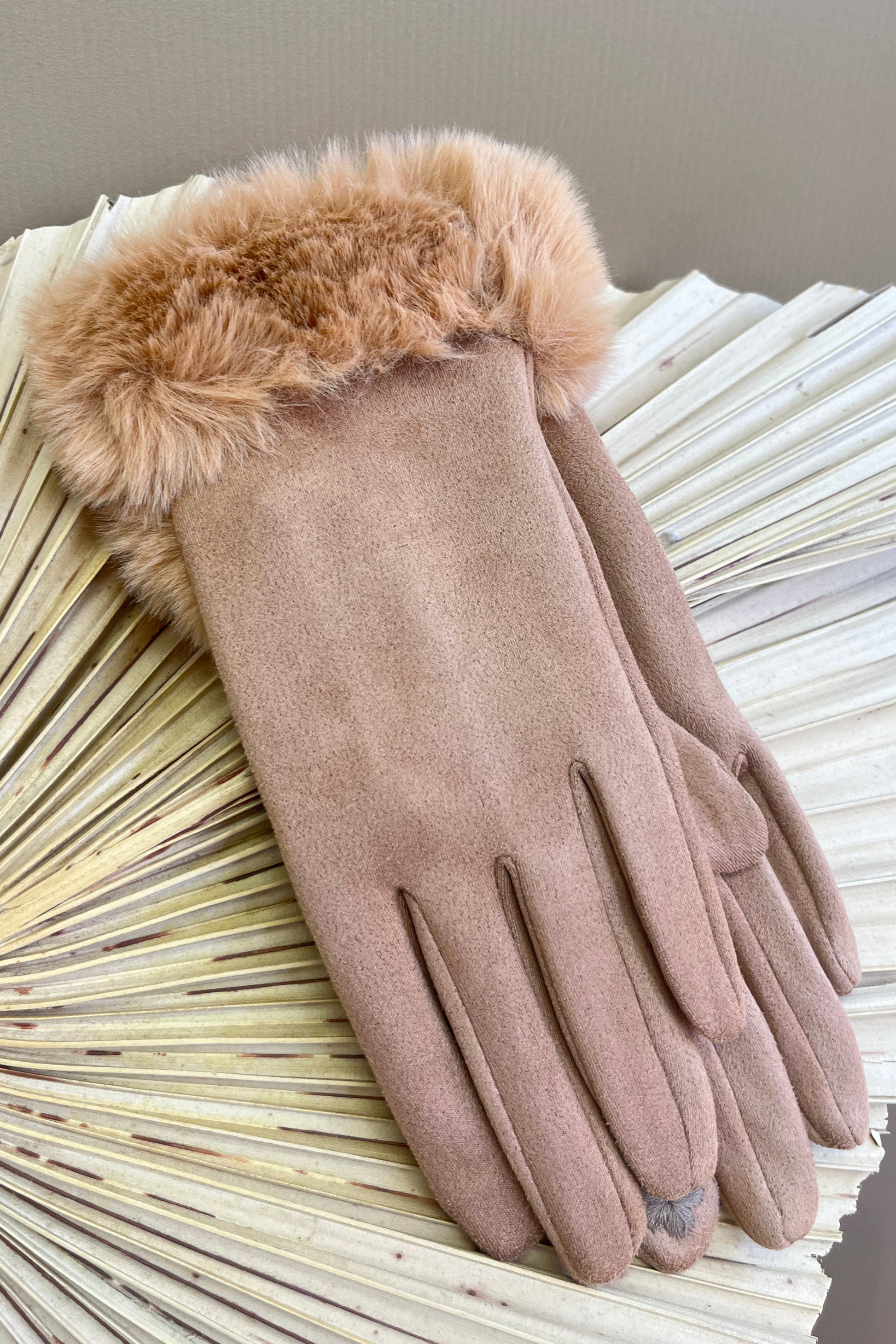 Faux suede gloves with faux fur cuff (VARIANT COLOURS)