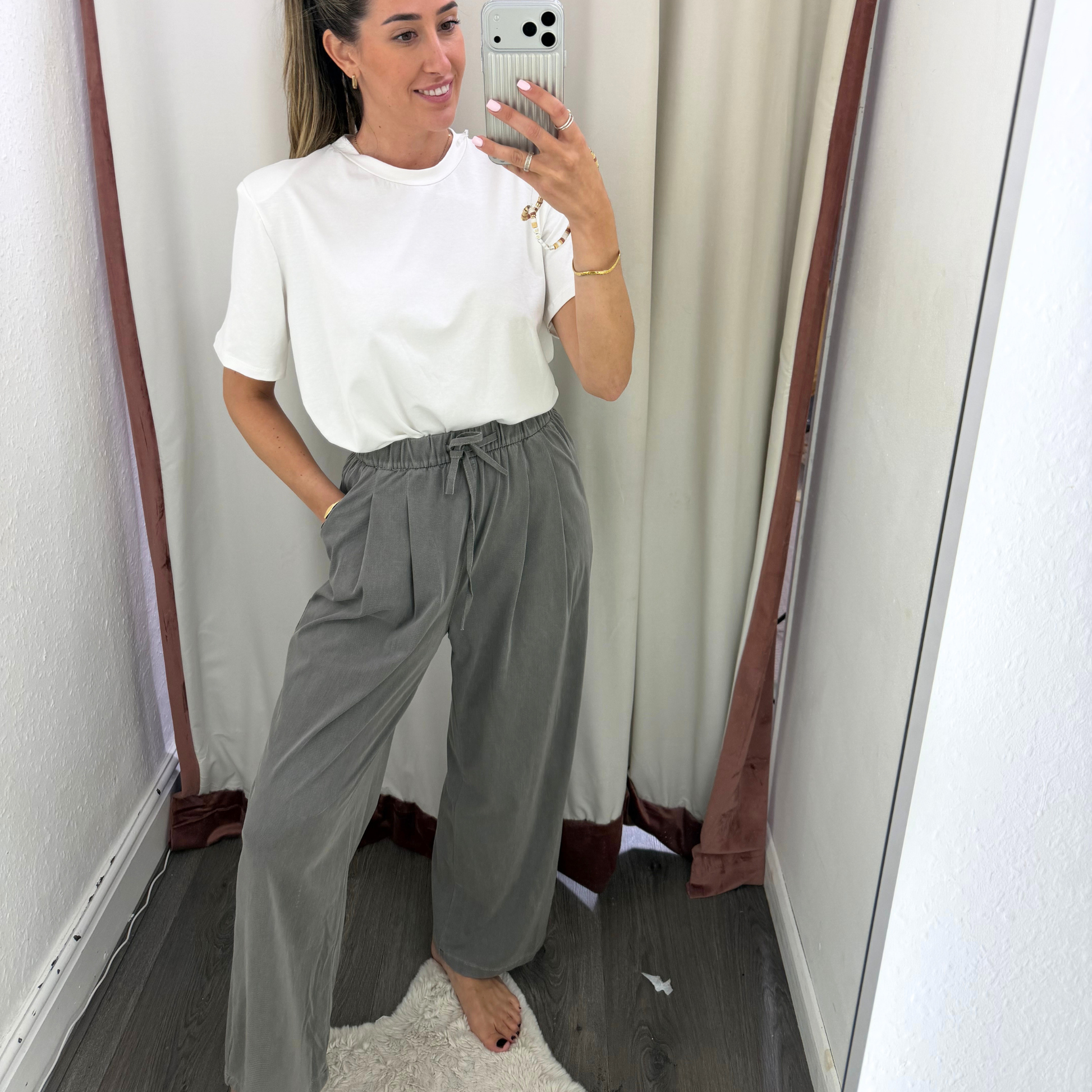 Grey Relaxed Drawstring Trousers
